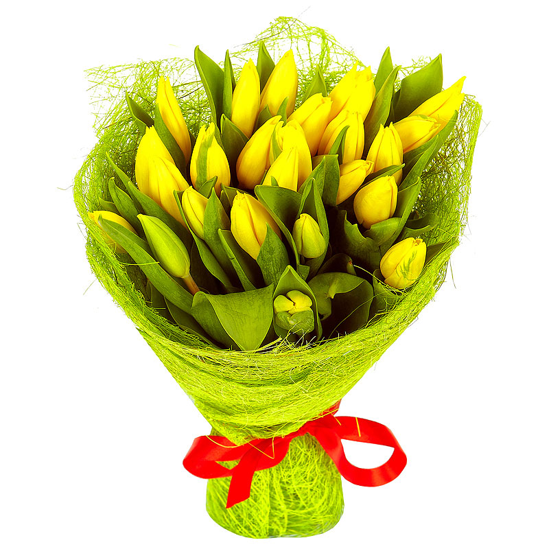 Тюльпаны желтые 25 шт + упаковка.